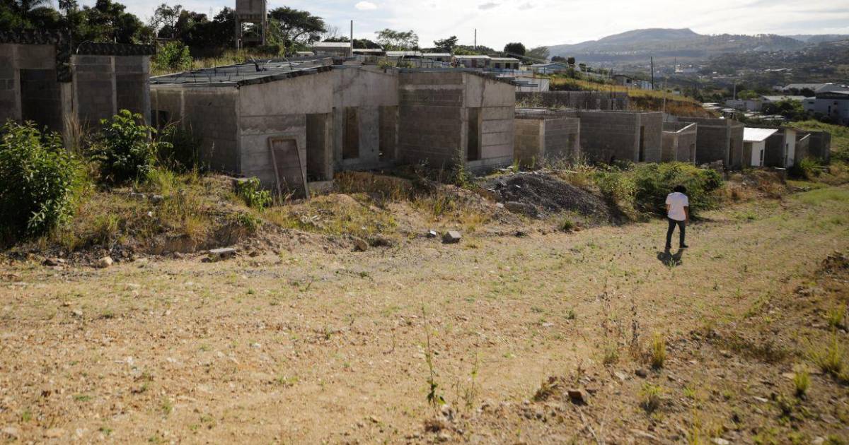 Algunas de las casas cuentan con sanitarios instalados y techos colocados; otras son únicamente estructuras de bloques sin acabados, sin puertas, sin ventanas.