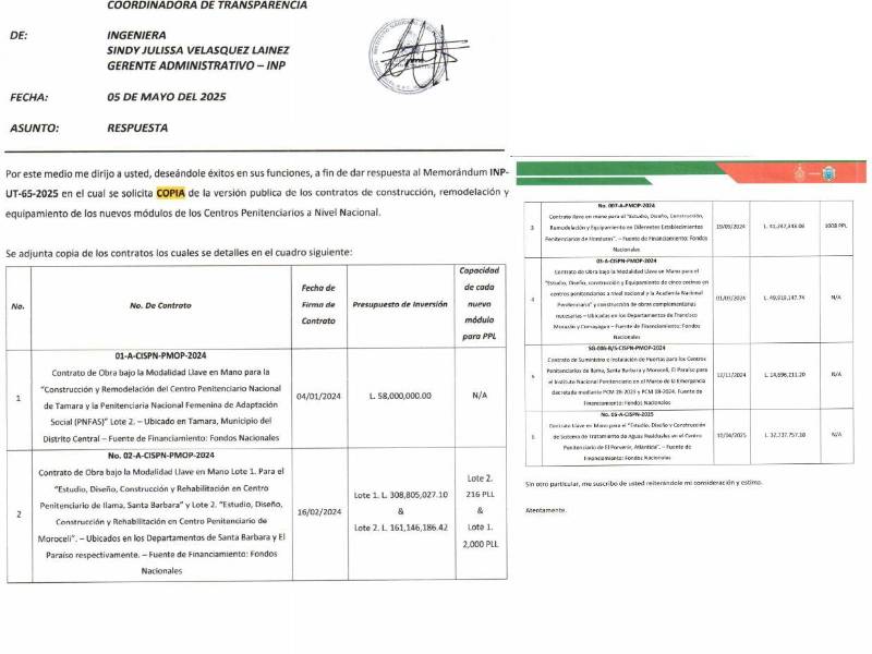 Por medio de la solicitud de información SOL-INP-503-2025, el INP proporcionó a EL HERALDO Plus el monto de cada uno de los proyectos que se han ejecutado, así como copia de los contratos, tachando el nombre de las empresas a cargo, por temas de seguridad, informaron.