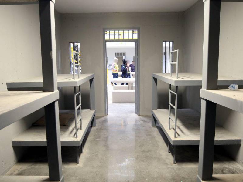 Las camas son de hierro y concreto, empotradas en las paredes; los sanitarios y lavamanos de acero inoxidable están dentro de cada celda, donde los internos tendrán que hacer sus necesidades sin la privacidad de que sus compañeros no los vean.