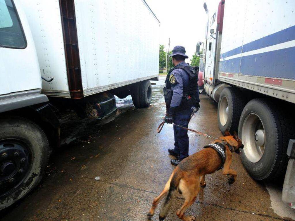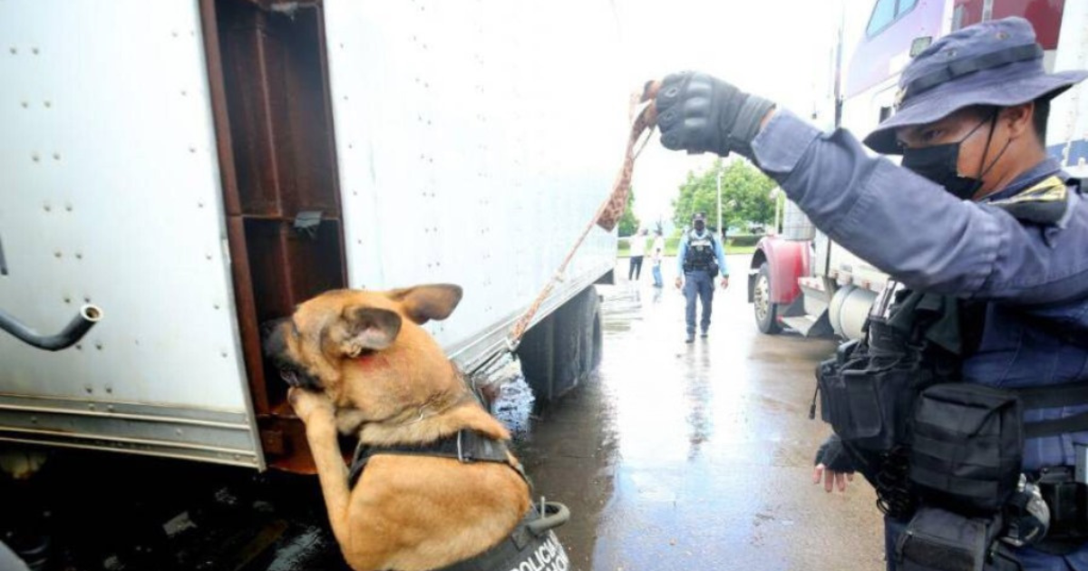 La inspección con perros antinarcóticos es uno de los filtros que deben pasar los vehículos que circulan por la frontera entre Honduras y Nicaragua, aunque investigaciones dicen que hay agentes involucrados en permitir el paso de droga.