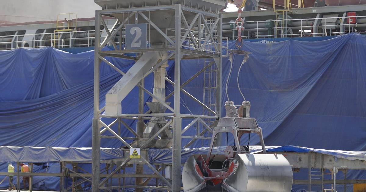 Con el barco en el punto de descarga se instalan las almejas en las grúas (brazos mecánicos para descargar el producto), se inspecciona que los silos estén vacíos -lo hace el personal de Aduanas y el importador- al igual que las bodegas en un control obligatorio.