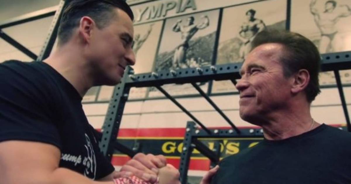 En la grabación se ve a Andreas ejercitarse, mientras recibe el apoyo de Arnold, en uno de los más conocidos gimnasio de Los Ángeles.