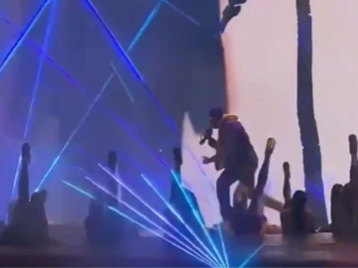 TEGUCIGALPA, HONDURAS.- Son muchos los cantantes que han sufrido aparatosas caídas durante sus presentaciones y esta vez fue el turno de Bad Bunny, quien se deslizó en el escenario cuando cantaba en Guatemala.