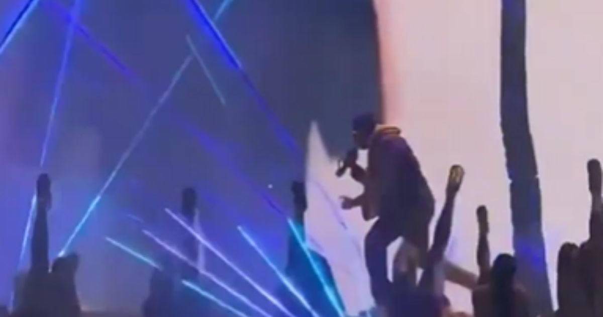 Fue cuando el popular cantante interpretaba su tema “Neverita” que mientras sus bailarinas se encontraban acostadas en el escenario haciendo unos coordinados pasos con sus piernas, él pasaba detrás de ellas y se deslizó.