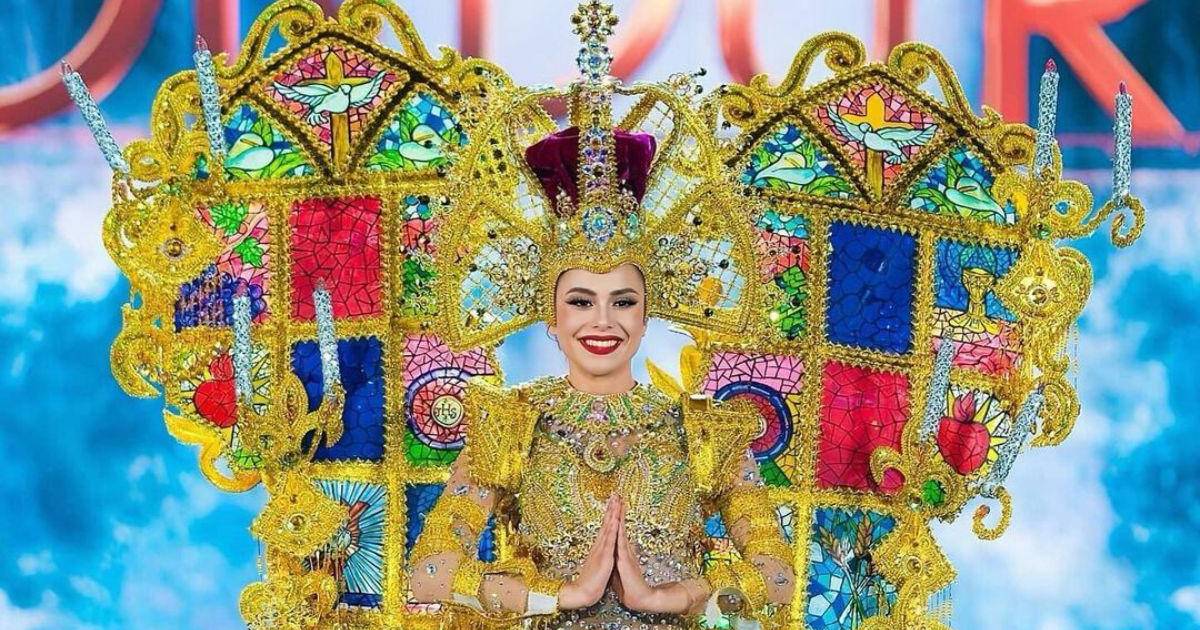 Llena de oro, sillas y candelabros, además de unos hermosos vitrales de colores, fueron parte del impresionante atuendo que usó la catracha.