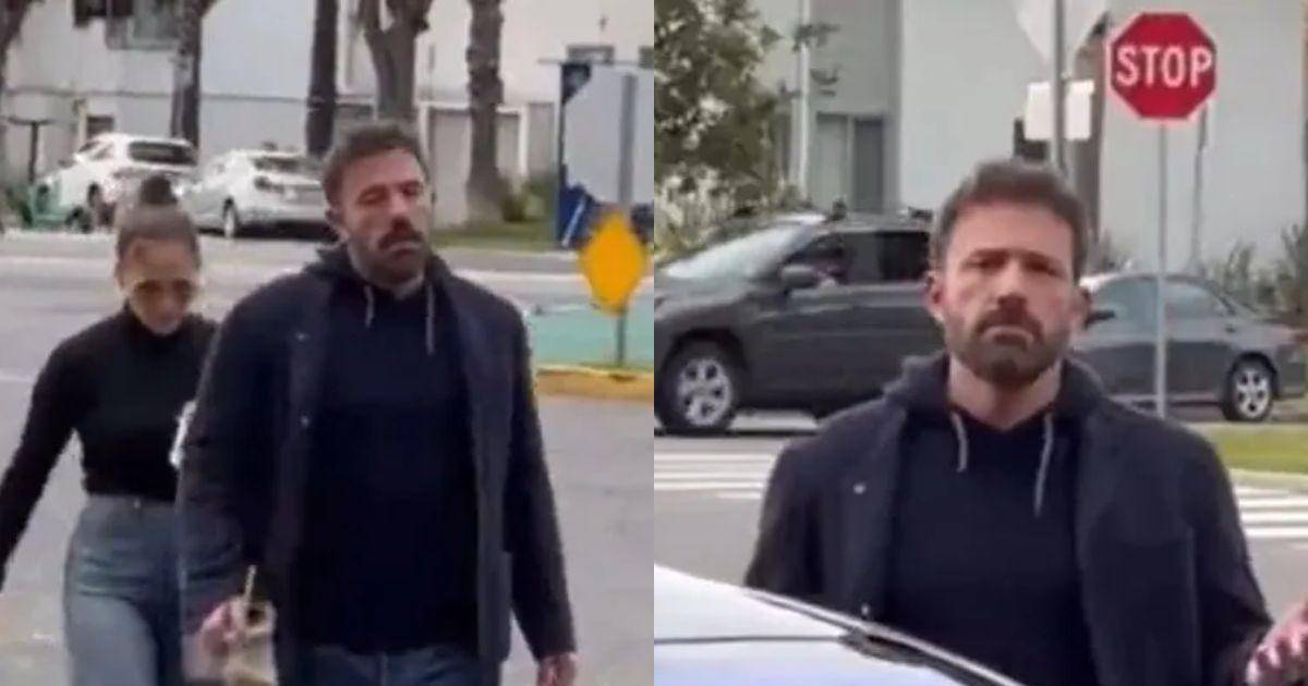 En el clip se puede ver a Jennifer López y a Ben caminando por una calle hacia su vehículo, pero la expresión facial del actor demuestra incomodidad y fastidio.