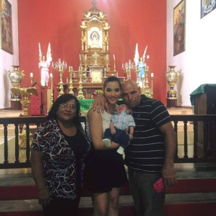 En la presentación de Thiago en la ermita de Suyapa, la hondureña se hizo acompañar de su esposo Marvin Fuentes y demás familiares.