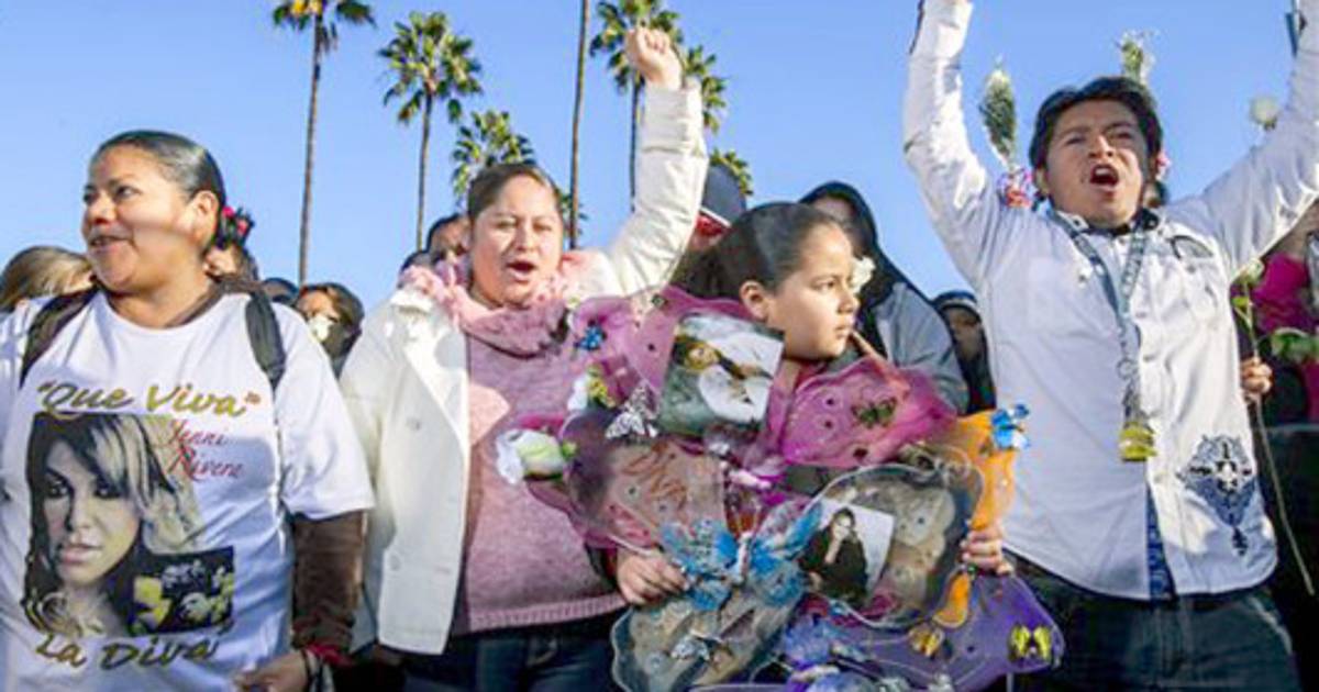 Vestidos de negro, llevando camisetas o botones con la imagen de Jenni Rivera, carteles que decían 'Jenni, I love you' y una rosa blanca, más de seis mil fans despidieron a la 'Diva de la Banda', un estilo regional mexicano.