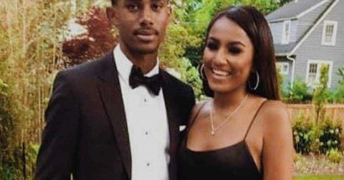 La joven aparece en una imagen junto a su cita, previo a asistir a la fiesta de graduación.