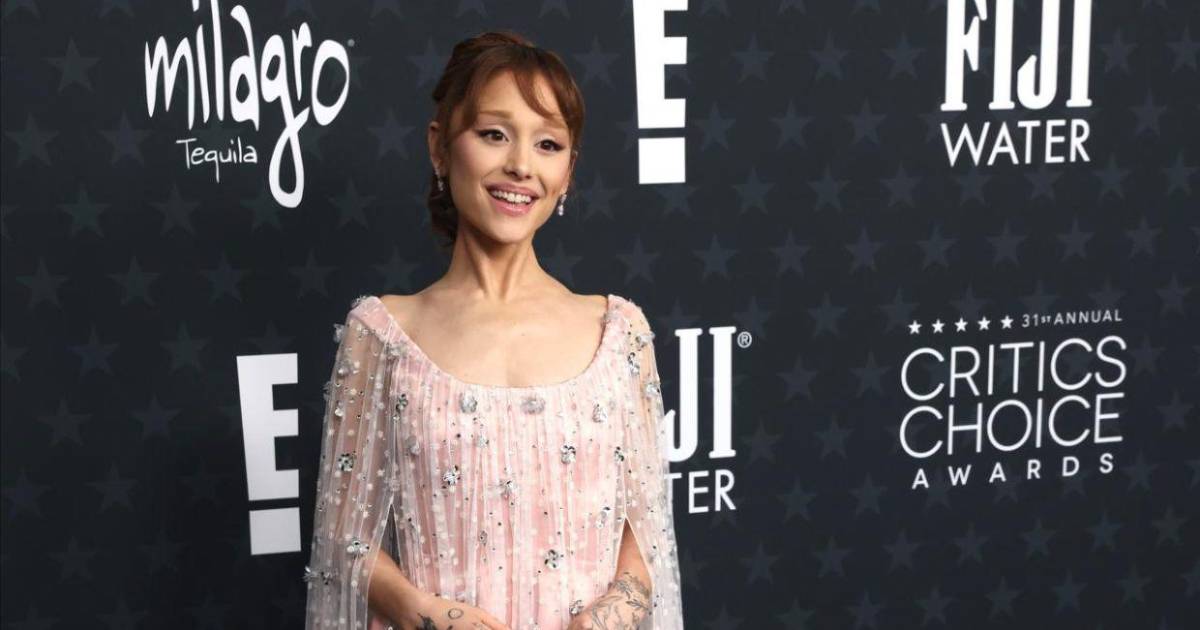 Los Ángeles, Estados Unidos.- Ariana Grande acaparó miradas en la alfombra roja de los Critics Choice Awards 2026 con un vestido rosa y blanco de largo completo firmado por Alberta Ferretti.