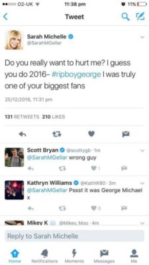 Pero uno de los tweets que más causó indignación fue el de la actriz de la serie de vampiros Sarah Michelle Gellar se mostró triste por su artista favorito, pero al parecer no era tan fan por el error que cometió.