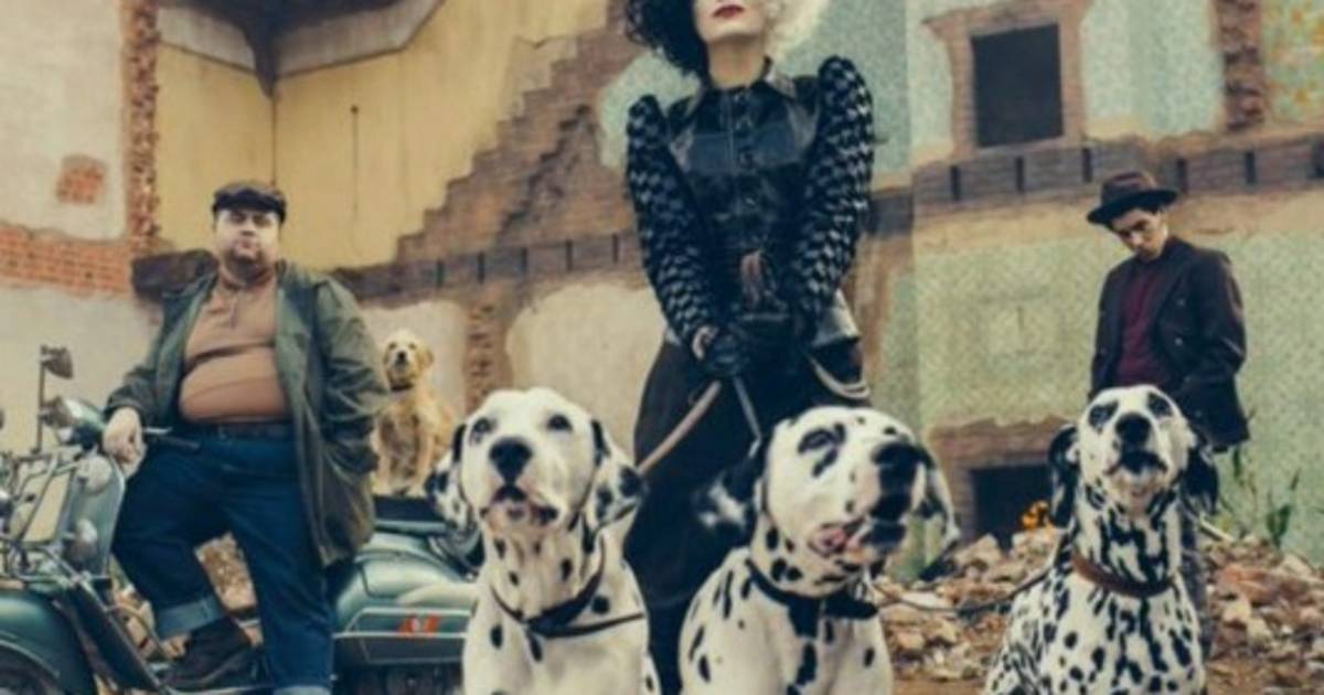 Con un look bastante cambiado, junto a tres amenazantes dálmatas frente ella y dos secuaces detrás, Emma Stone aparece en la primera imagen de la película ' Cruella' que se estrenará el 28 de mayo de 2021.