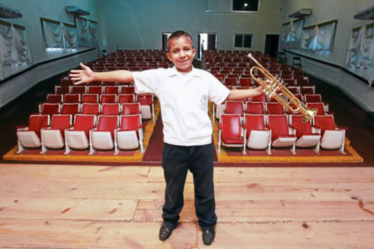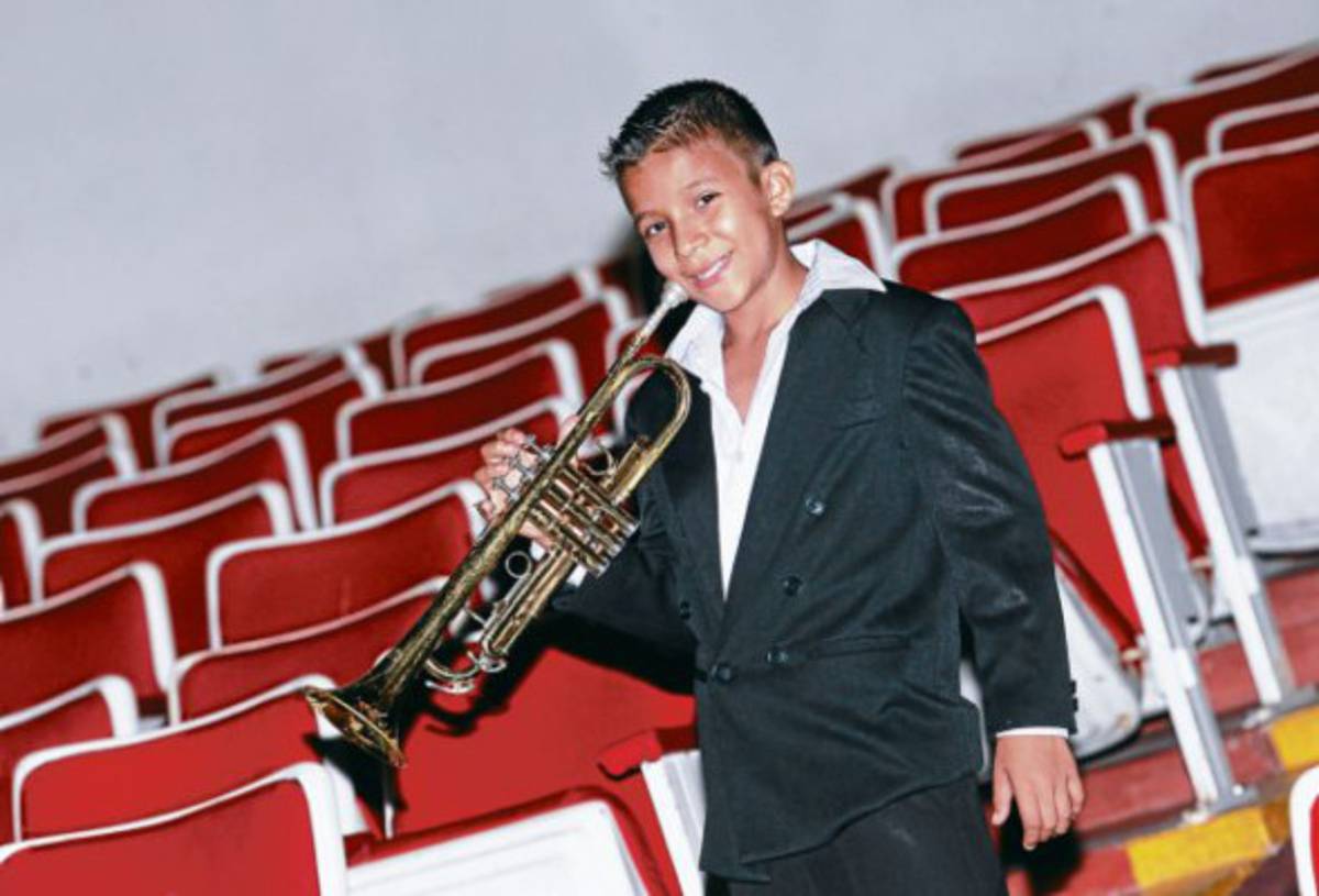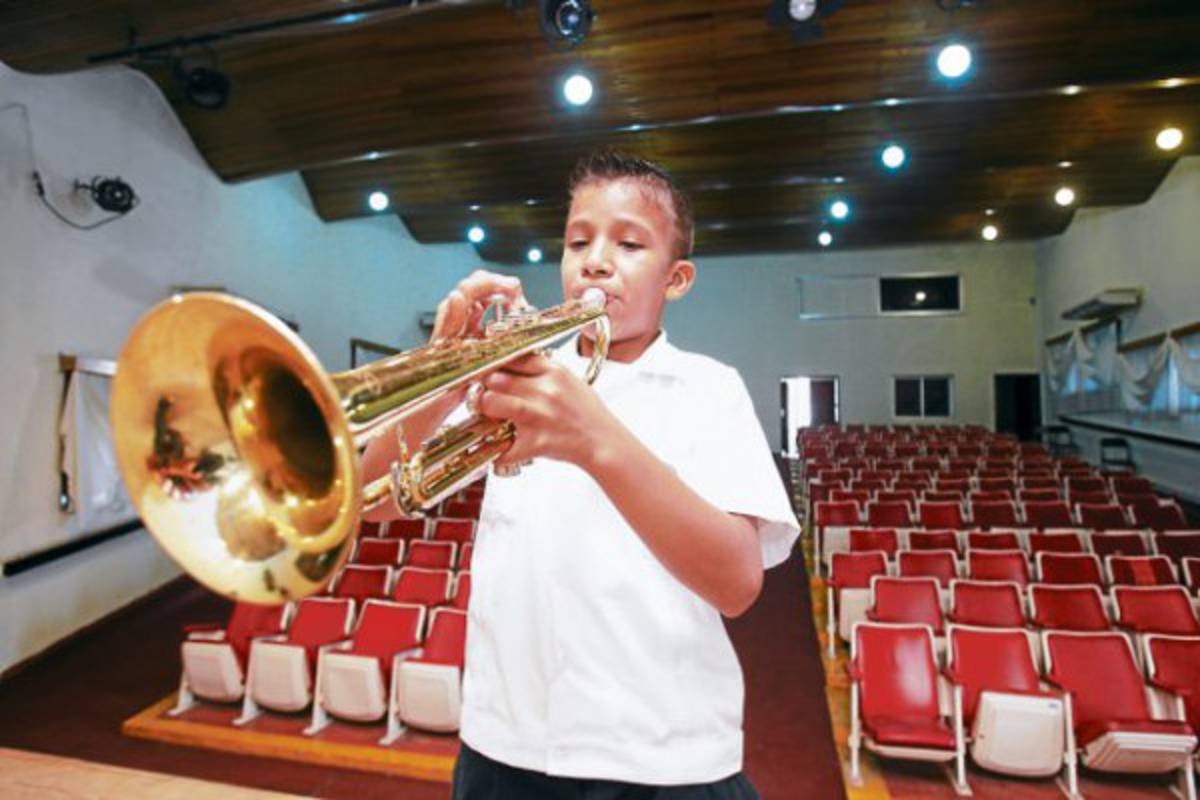 Su disciplina y su dedicación durante largas horas de práctica lo caracterizan y lo han llevado a sobresalir entre los niños que mejor tocan la trompeta en este centro de estudios.