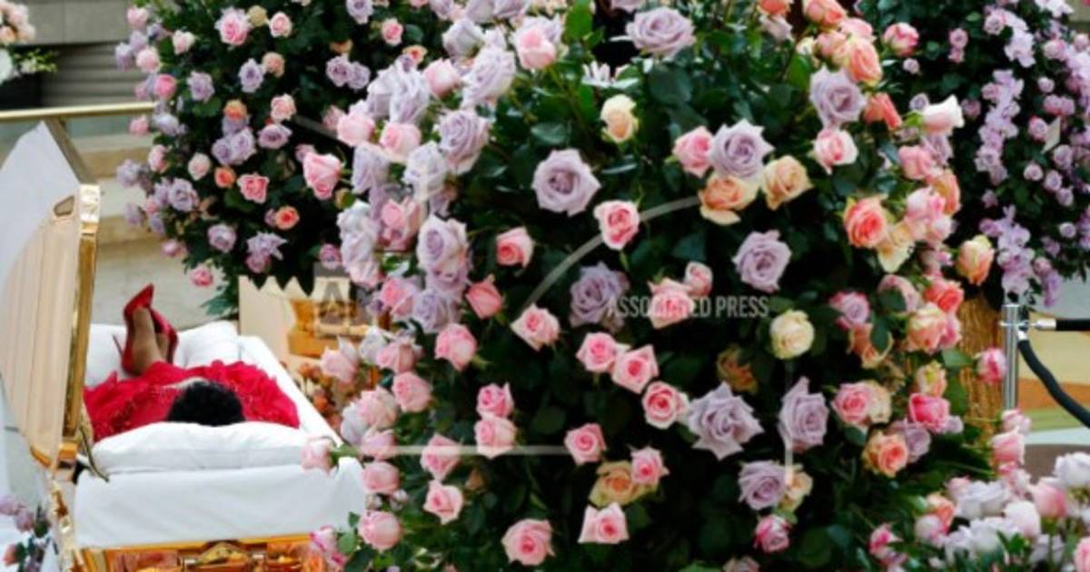 Se acercaron al féretro bañado en oro mientras al fondo sonaban sus grabaciones de góspel. Yacía en reposo, vestida de rojo de la cabeza a los pies, con zapatos de tacón alto.