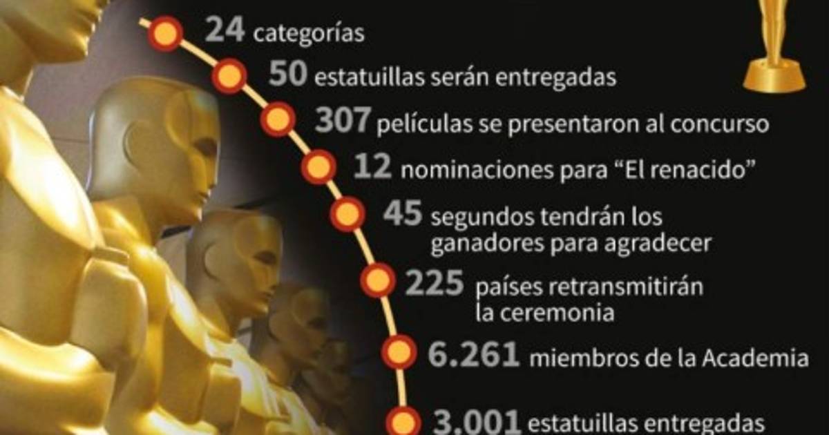 'El renacido' acude como la favorita de la noche con 12 nominaciones y con la esperanza de ser el trampolín para que sus protagonistas graben en oro su nombre en la meca del cine.