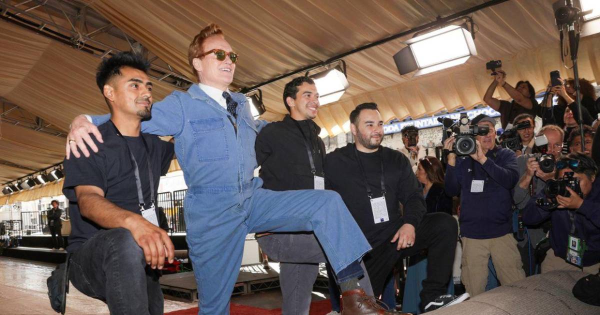 El comediante estadounidense Conan O'Brien, quien por segundo año consecutivo presentará la gala, ayudó a extender el tapiz que cubrirá por unos días parte del Paseo de la Fama para dar paso a los protagonistas del cine de este año.