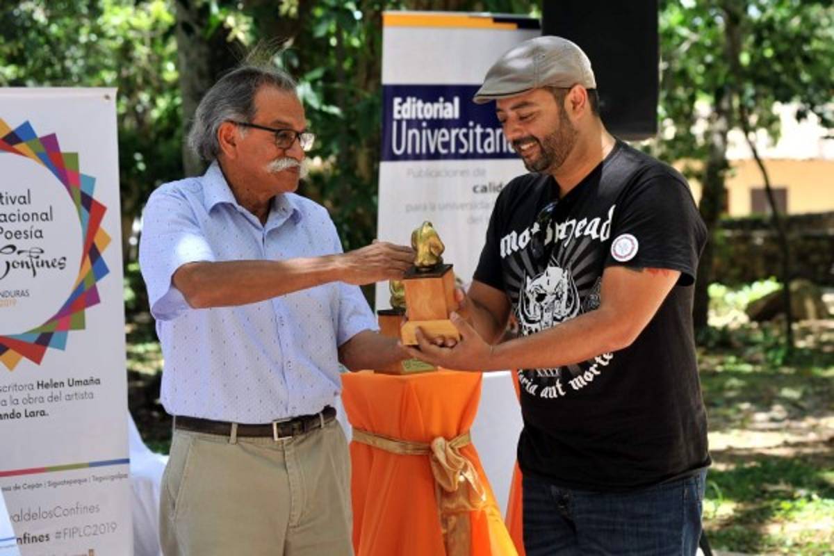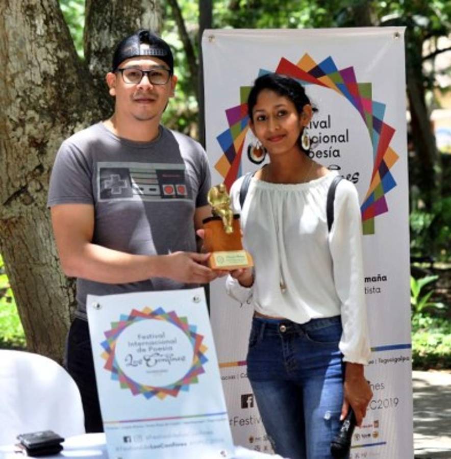 Ahora, en la tercera edición del evento, el joven poeta se acompañó del fundador y actual director del festival, Salvador Madrid; del editor en jefe de la Editorial Universitaria de la Universidad Nacional Autónoma de Honduras (UNAH), Carlos Ordóñez; del cuerpo deliberador del concurso de este año: Helen Umaña (Honduras), Martha Alonso (España) e Iván Oñate (Ecuador) y del resto de invitados para reclamar su estatuilla y conversar acerca de la obra que hoy se encuentra impresa.