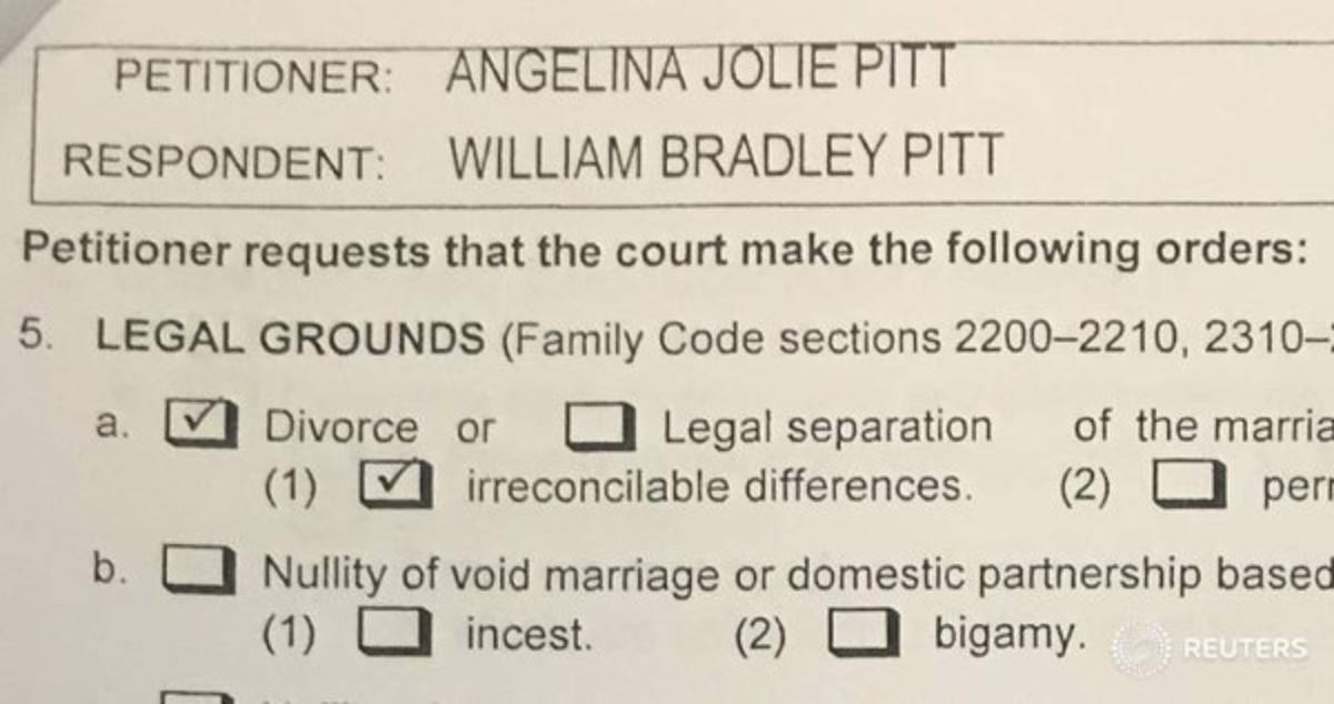Angelina Jolie colocó el punto final a su matrimonio con Brad Pitt, después de doce años de relación. La actriz alegó “ diferencias irreconocibles” para justificar su decisión de divorcio, pero fue más allá y también habló de las adicciones de Pitt como parte de los motivos que los separaron.