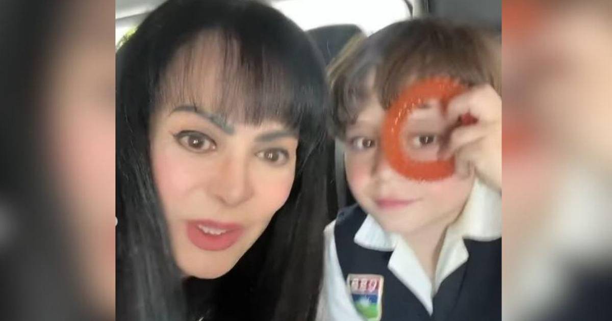 “Tírales un beso a todos. Dale un besito a Mimí. Estamos saliendo de la escuela, ¿cómo estás?”, le preguntaba Maribel a su nieto, quien vestía de negro y lucía un maquillaje natural y lentes de sol.