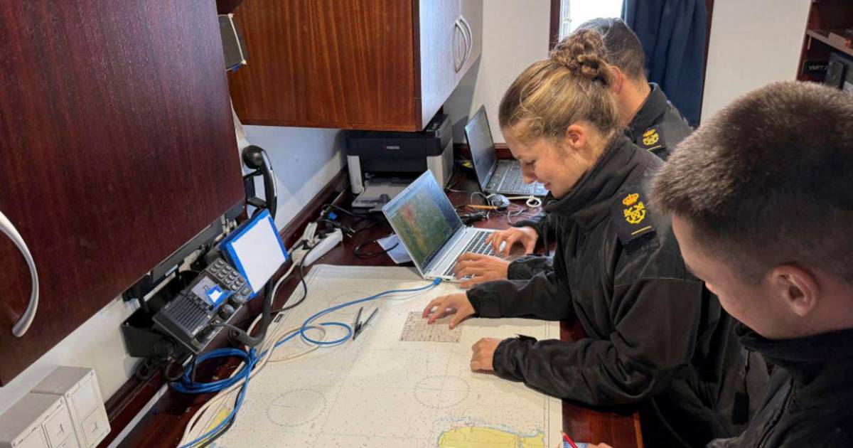 En una de ellas, la hija de Felipe VI aparece comprobando la situación en la carta de navegación y calculando el rumbo necesario hasta el estrecho de Magallanes.