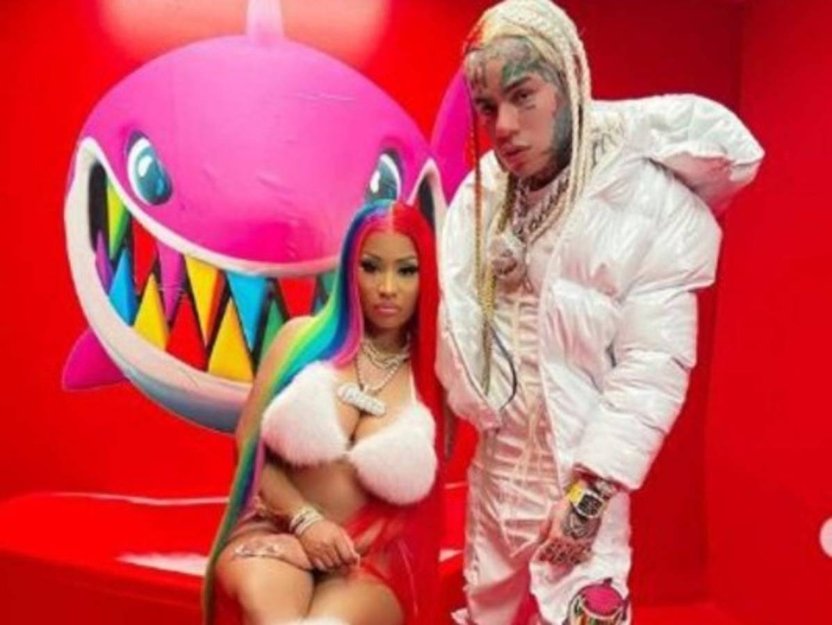 En las imagenes promocionales, ambos raperos aparecen usando ropa de colores llamativos, pero lo que ha llamado la atención de los fans es la tobillera de vigilancia que lleva 6ix9ine y la cual queda expuesta en la imagen.