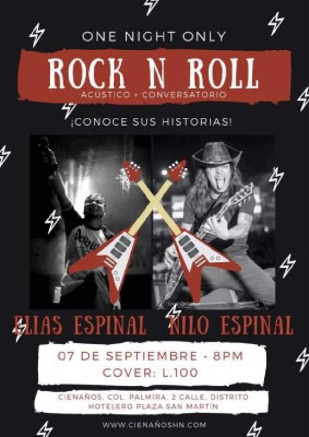 Los hermanos Espinal brindarán hoy un concierto acústico/semi acústico a partir de las 8:00 de la noche en el acogedor recinto Cienaños, en donde los amantes del rock cantarán un par de melodías de ambas agrupaciones. Pero, en primer lugar, serán hits de artistas que de una u otra manera han marcado los estilos musicales de Nilo y Elias.