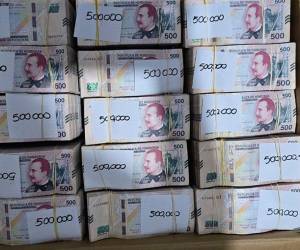 La pintura, que mide dos metros y que fue pintada a mano en acrílico y pastel de cera, está enmarcada en una caja veneciana de madera recubierta con oro.