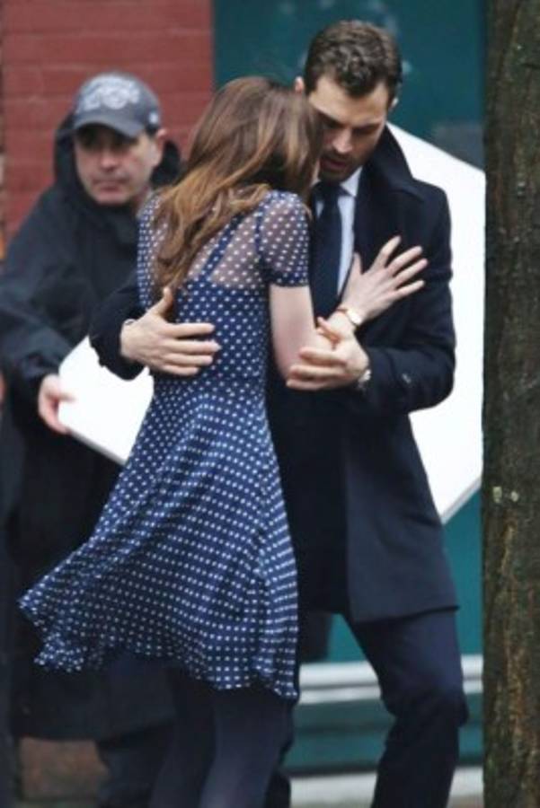 Los actores y protagonistas Dakota Johnson ( Anastasia Steele) y Jamie Dornan ( Christian Grey) fueron captados por las cámaras de los paparazzi, realizando una romántica escena, si leíste el libro ¿sabes por qué parte va?.