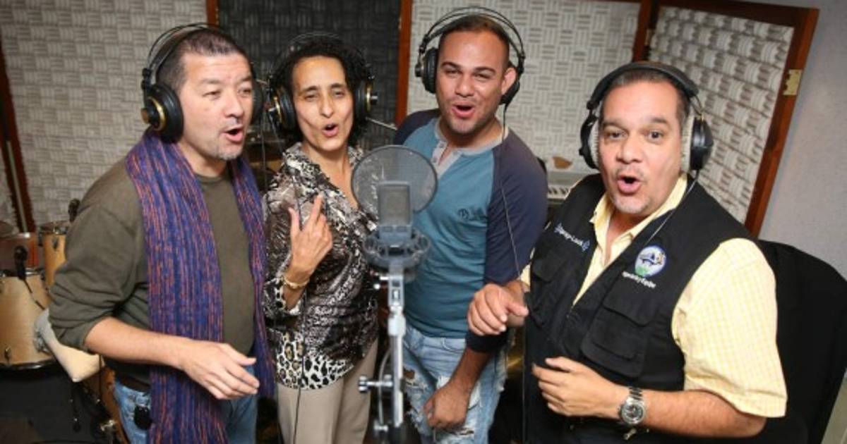 William Andrews, Edinora Cherenfant, Gerson Canales y Manuel Flores, del Ministerio Musical Amor y Fe, se sienten muy contentos y satisfechos de ser las voces del himno de Teletón 2014.