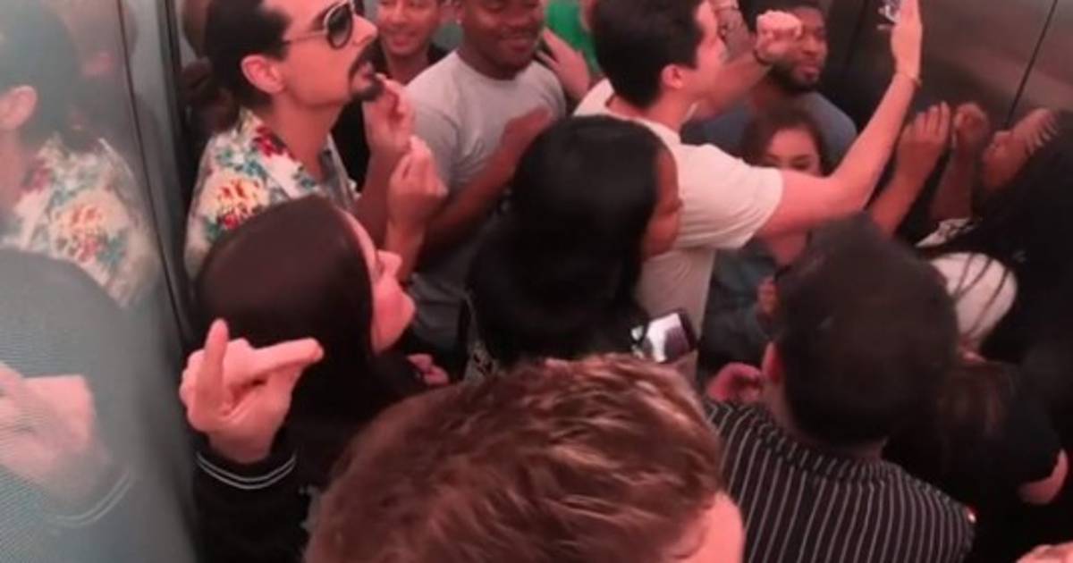 El vídeo, que fue publicado en las redes sociales, comienza cuando los chicos esperan que ingresen más personas al elevador y estos tratan de disimular ante el asombro de sus fanáticas.