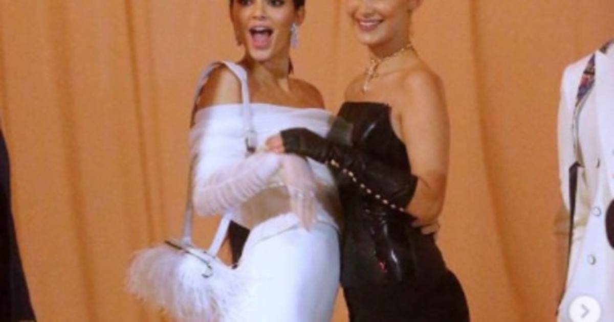 Bella Hadid está acostada en el suelo y Kendal sobre ella, luego las jóvenes se besan, mientras los presentes gritan y aplauden, esto hace que Hadid se apene y se recueste en el suelo nuevamente.