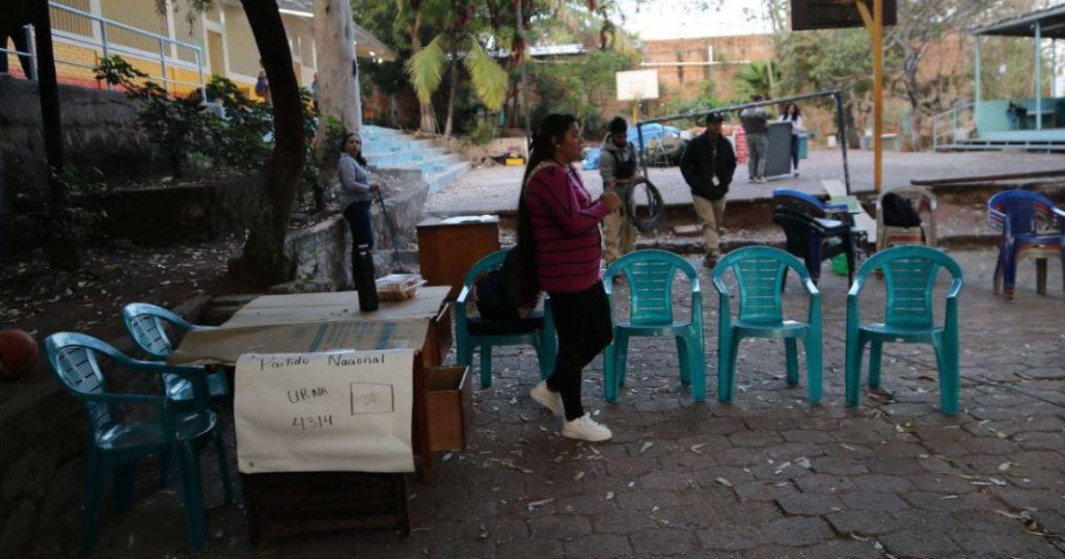 Tegucigalpa, Honduras. - En la escuela República de Nicaragua de la colonia Miraflores de Tegucigalpa, los integrantes de las Juntas Receptoras de Votos (JRV) del Partido Nacional y algunas del Partido Liberal, se tuvieron que instalar en las áreas verdes porque los sacaron de las aulas.