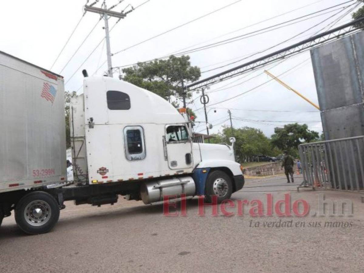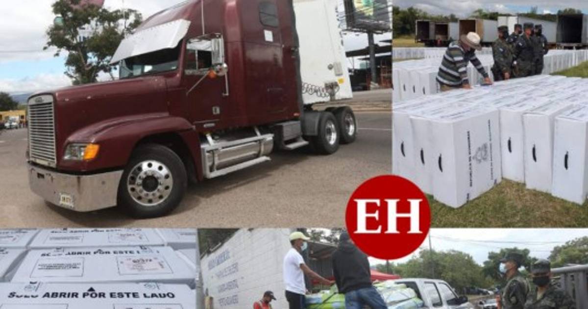 Decenas de camiones salieron cargados con maletas electorales hacia el interior del país, con rumbo a cuatro departamentos. Un total de 3,554 maletas electorales fueron puestas a bordo de los vehículos para ser distribuidas