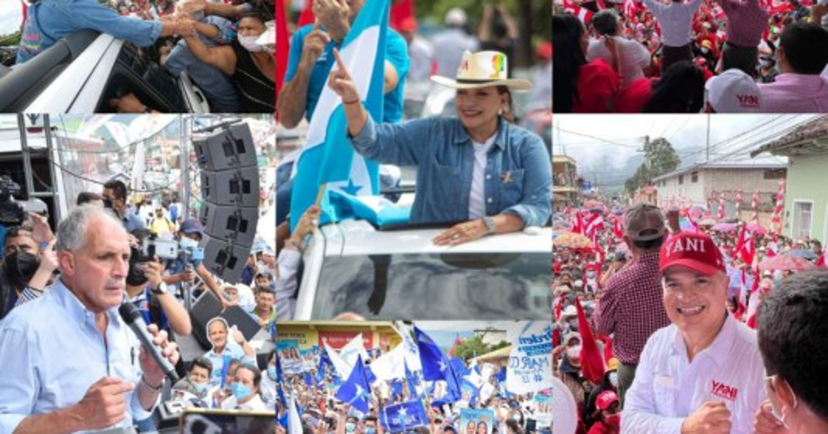 Los presidenciables de los partidos Liberal, Nacional y Libre continuaron sus giras de campaña política este sábado en distintos departamentos del país. Xiomara Castro visitó Valle, mientras que Nasry Asfura fue a varios municipios de Ocotepeque y Yani Rosenthal el municipio de Yoro