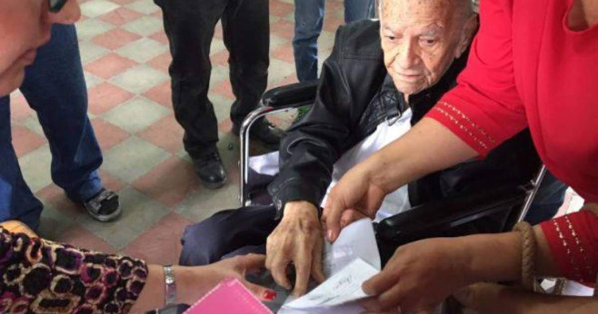 Entretanto, doña Alba Nora, que ronda los 75 años, arribó al centro de votación en condiciones menos favorables puesto que además de llegar en silla de ruedas acudió con su tanque de oxigeno y un enfermero al lado.