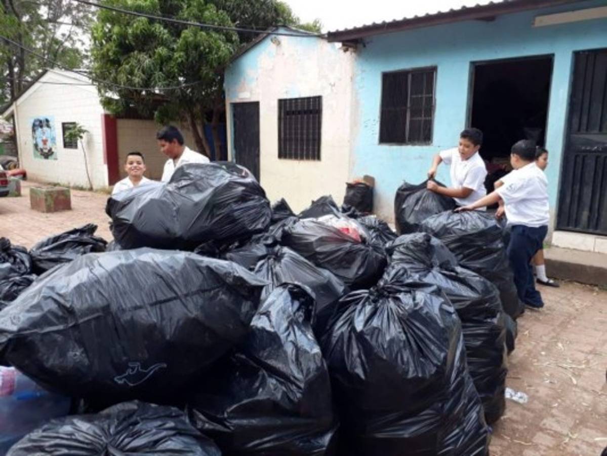 En total comercializaron 1,324 libras de material reciclado, con un monto económico de 3,319 lempiras, recursos que serán empleados en el proyecto ecológico de beneficio para el alumnado y los docentes.
