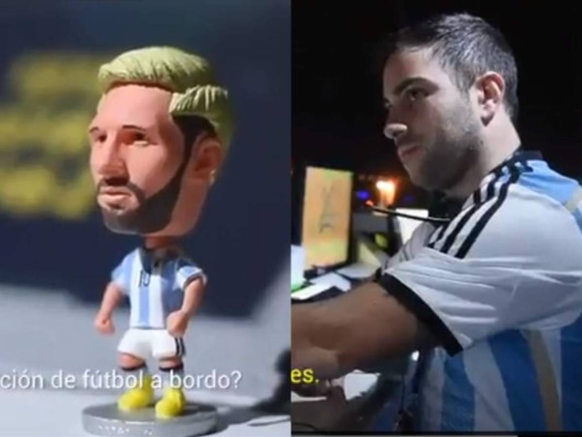 El joven con su camisa de la albiceleste dijo ' En nombre de la torre de control de Ezeiza y de todos los argentinos les deseamos mucha suerte, muchos éxitos y los esperamos a la vuelta ¡Vamos Argentina!'.