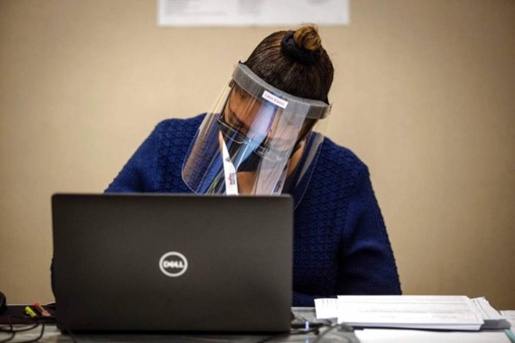 La pandemia ha transformado la forma de trabajar en la mayoría de rubros, y la falta de cura inmediata supone un futuro cercano lleno de escenas como esta. Fotos: AFP/AP 18/05/2020 - 00:0012 / 20 -
