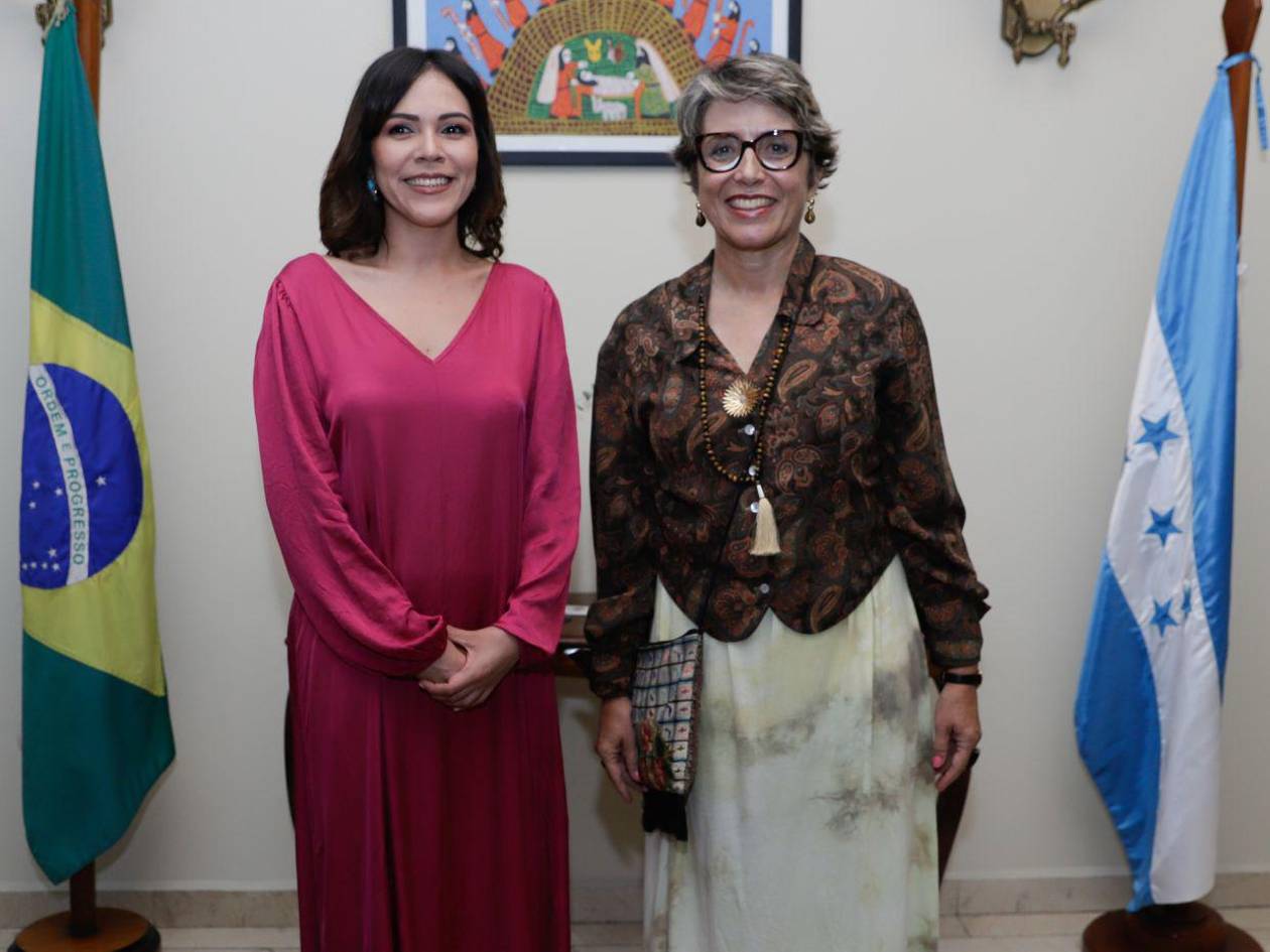 Cindy Rodríguez, vicecanciller de cooperación y poromoción internacional, y Andrea Saldanha da Gama Watson, embajadora de Brasil ante Honduras.