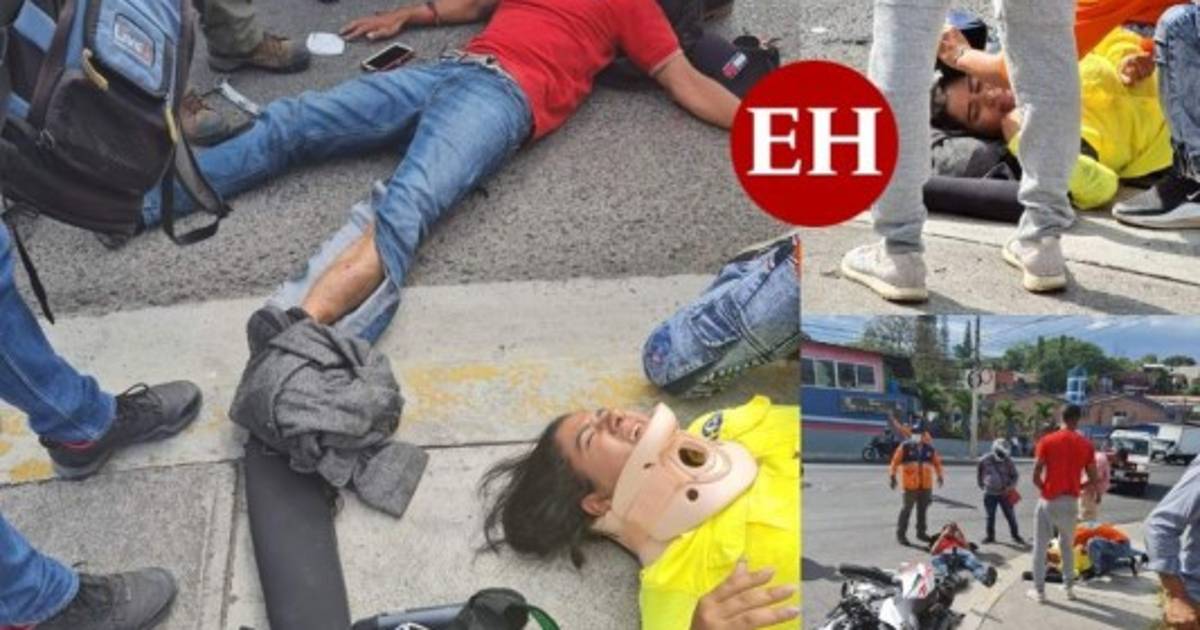 La reportera Joseline Flores del canal HCH y su camarógrafo, Gerson Ávila, fueron embestidos el viernes por un vehículo cuando se conducían en su motocicleta en la calle de Los Alcaldes, en la capital de Honduras. Fotos: Cortesía