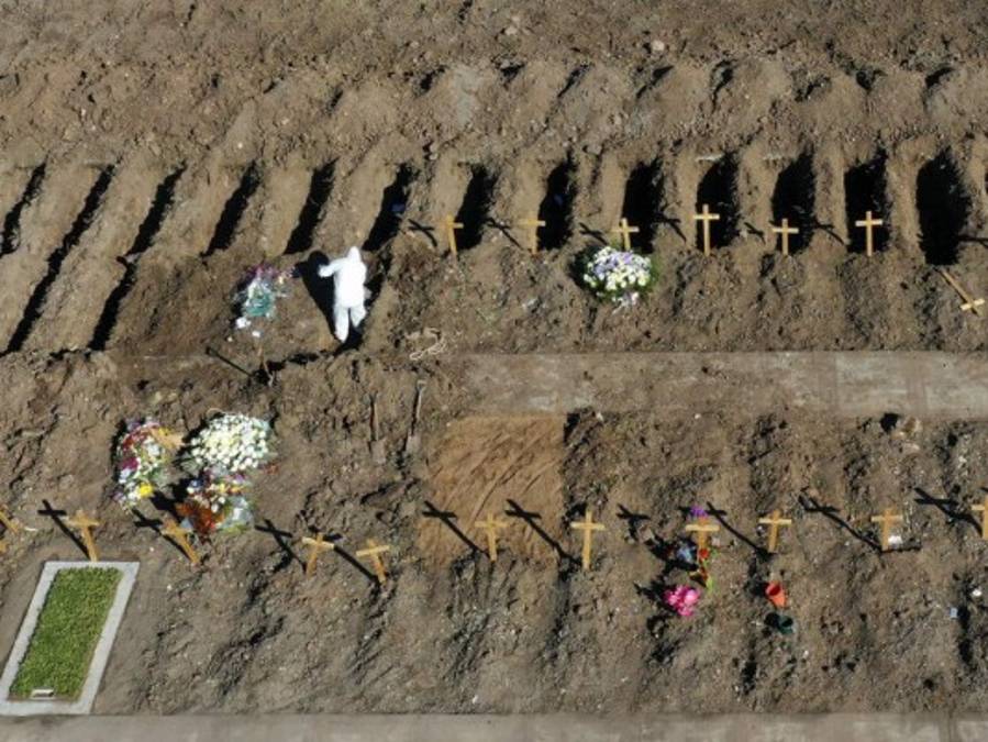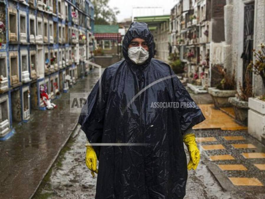 El trabajador de cementerio, Luis Aguilera, posa para una foto después de enterrar los restos de un hombre que se sospecha murió por complicaciones del nuevo coronavirus en el cementerio católico Bajos de Mena en el barrio de Puente Alto a las afueras de Santiago, Chile. En cuanto al número de muertos en relación con la población, Perú registra 589 fallecidos por millón de habitantes, lo que le sitúa en el 6º de la lista mundial, por delante de Chile (499), Brasil (440), México (368) y Panamá (336). 02/08/2020 - 00:007 / 16 -