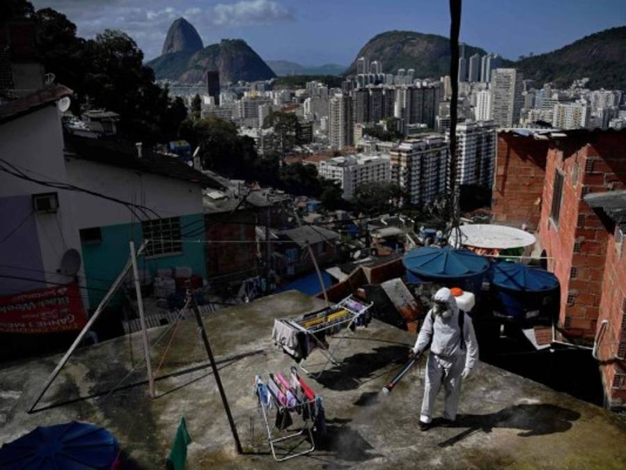 Brasil (93.563 muertos) uno de los países latinoamericanos más afectados, seguidos de Perú (19.408), Colombia (10.330) y Chile (9.533). Un voluntario desinfecta las calles en Santa Marta Favela, en Rio de Janeiro, Brazil. 02/08/2020 - 00:003 / 16 -