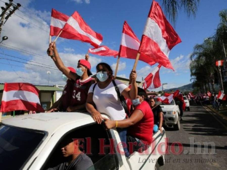 Banderas rojo y blanco se agitaban de un lado a otro mientras los grupos de transporte se organizaban para iniciar con la caravana en horas tempranas de este domingo. Foto: David Romero/El Heraldo 14/11/2021 - 00:003 / 16 -