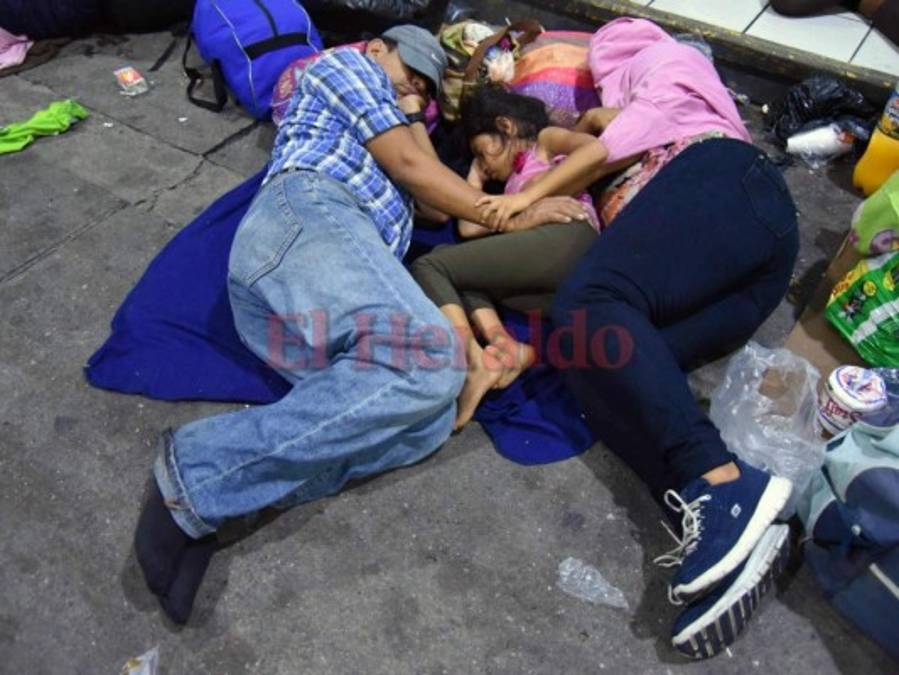 Así pasan la noche los hondureños de la caravana de migrantes