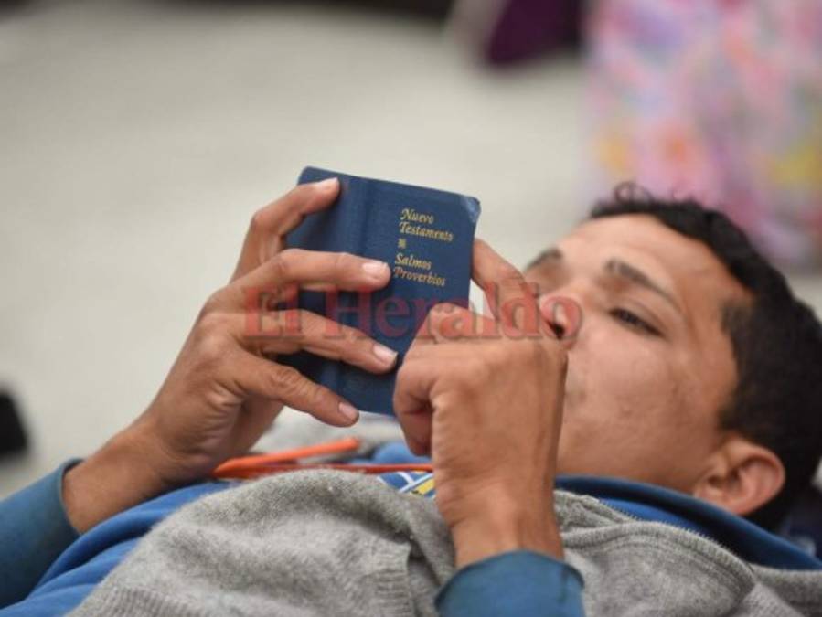 Algunos aprovechan el tiempo y leen la biblia. Foto: AFP 17/10/2018 - 00:008 / 10 -