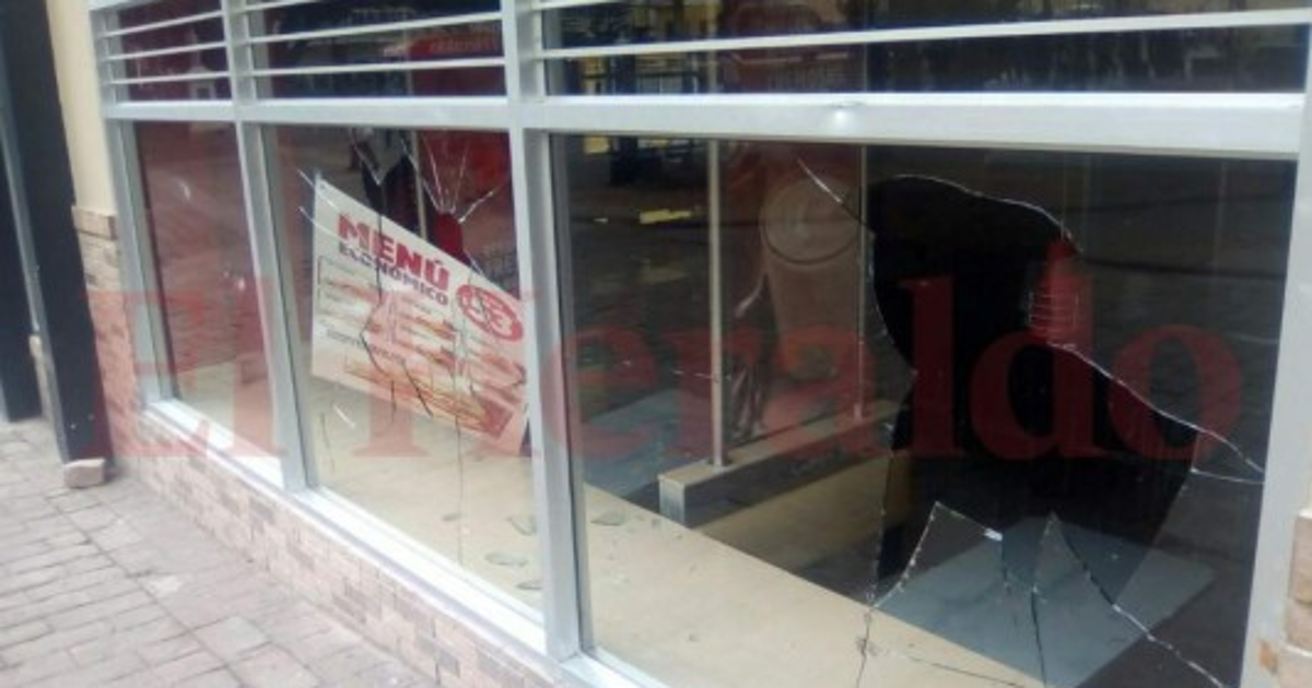 Los vidrios de este negocio de comida rápida fueron completamente dañados en el centro de Tegucigalpa, por parte de seguidores de la Alianza de Oposición. Foto: Alejandro Amador/EL HERALDO. 27/01/2018 - 00:003 / 7 -