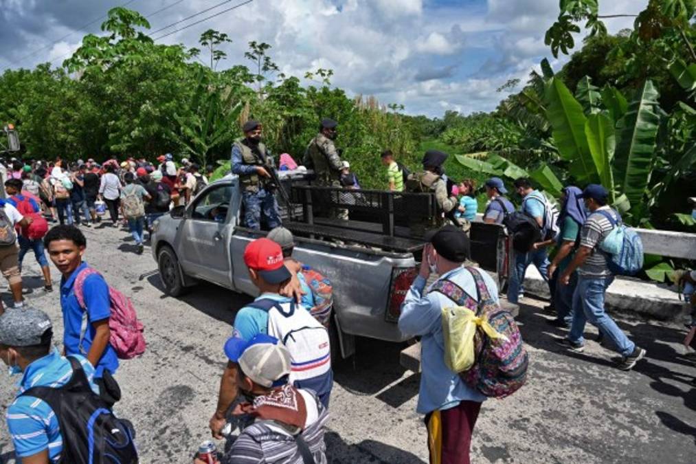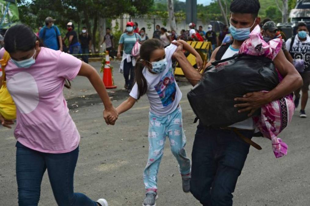 Cargando sus pocas pertenencias en mochilas o bolsas plásticas, gran parte de los migrantes no portaban marcarillas para prevenir los contagios. 01/10/2020 - 00:004 / 21 -