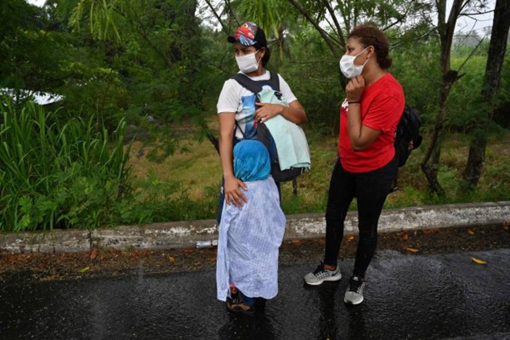 Bajo la lluvia, con niños y expuestos al covid-19, caravana migrante avanza hacia Guatemala