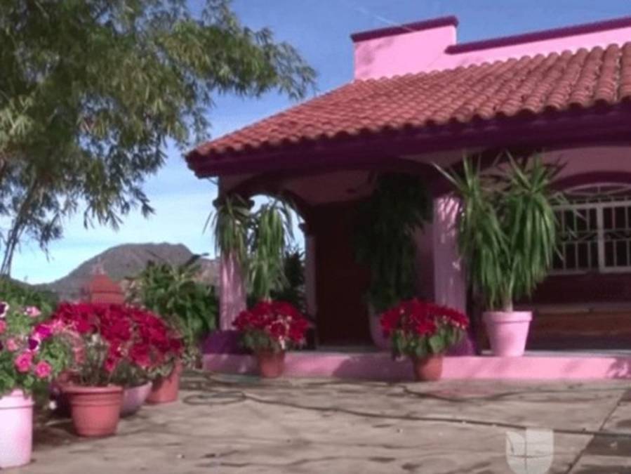 La residencia se encuentra en el municipio de Badiraguato, Sinaloa, la tierra del narcotraficante Joaquín “El Chapo” Guzmán Loera, destaca no sólo por encontrarse en la parte intermedia de un cerro, sino también por sus colores rosa y marrón.