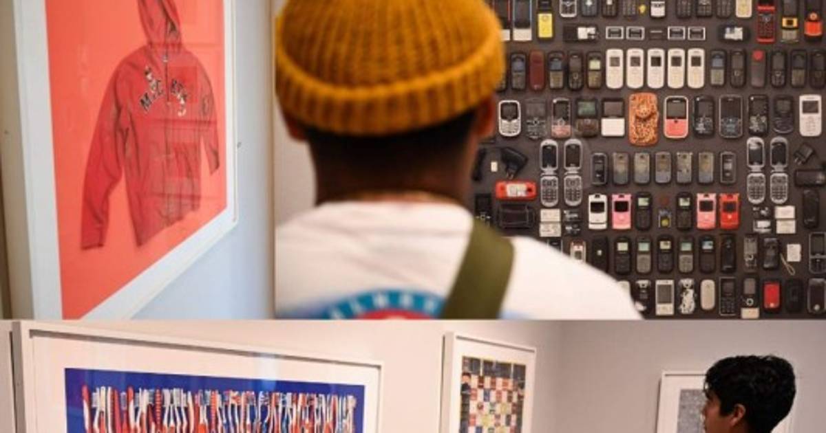 Cerca, unos 50 cepillos de dientes --algunos muy usados, gastados, sucios-, que se alinean con mucha precisión bajo un fondo azul. Al otro lado, cantimploras, metidas en bolsas de tela. Y más allá una foto llena de teléfonos celulares, de distintos modelos y épocas. 15/12/2019 - 00:008 / 11 -